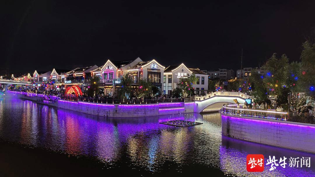 日前,位于江苏省无锡市新吴区梅村街道的梅里古镇流光溢彩,吸引了众多市民前来游玩。